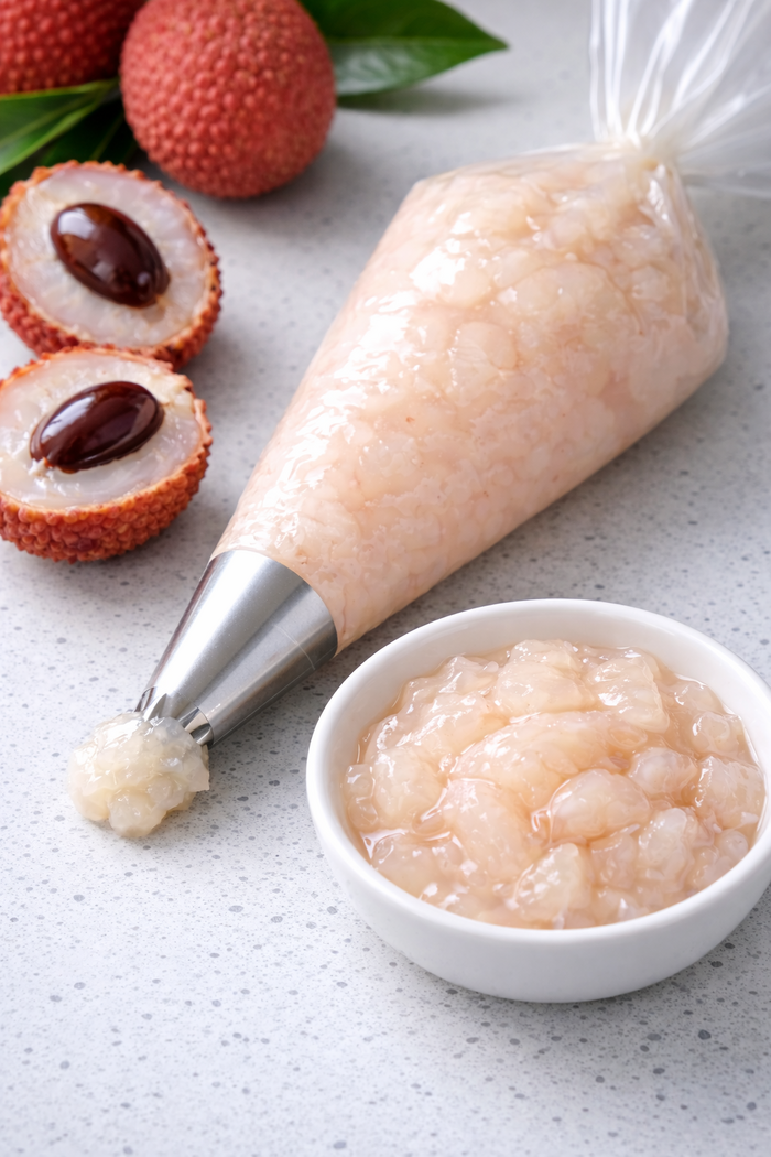 • Tritura finamente los lichis en una Thermomix o con ayuda de otra herramienta.