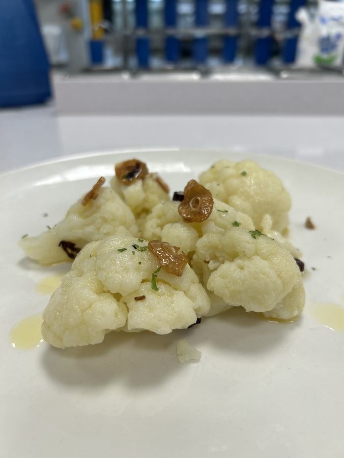 - Zerbitzatzeko unean, sartu azalorea labean, beroa har dezan, eta behin aterata, egin frijituki bat baratxuriarekin eta piperminarekin. Bota azalorearen gainean labetik ateratzean.